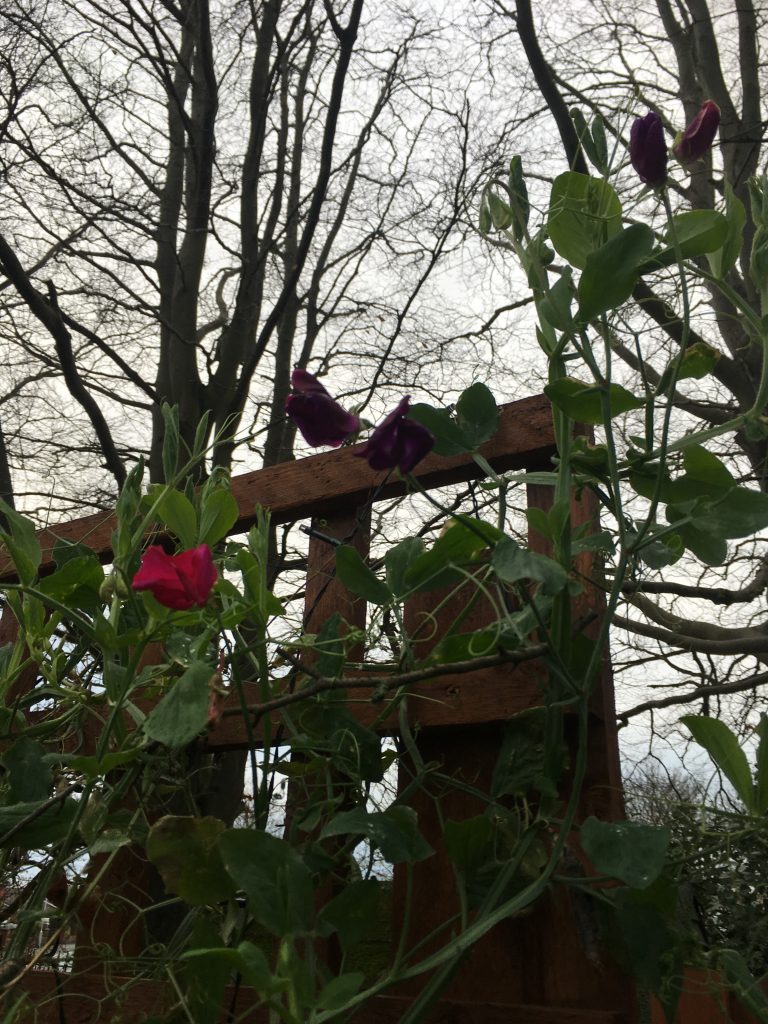 I’m astonished to see sweet peas still in bloom given we have had several severe frosts. Annual lobelia, along with many other annuals, is still actually flowering, now that’s unheard of ! I’ve also noticed lots of rose buds…..this climate! No doubt a sudden, prolonged icy spell will see them all off.