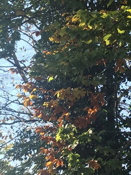 I’m loving the green, yellow and russet leaves on the beech trees. Leaves are now littering all the gardens and are forming droves against fences and walls.