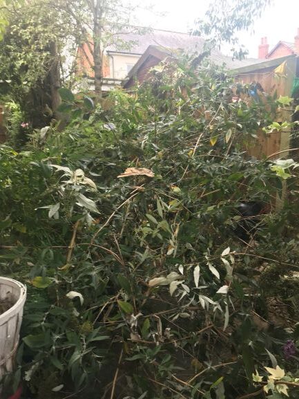 Hubs took half of the buddleia down in the courtyard as it was blocking the light from the herb station. It took him fifteen minutes to cut down and me all day to chop up. You should have seen my blisters!