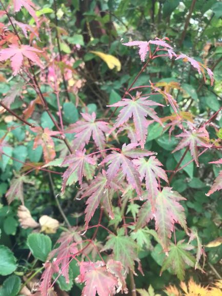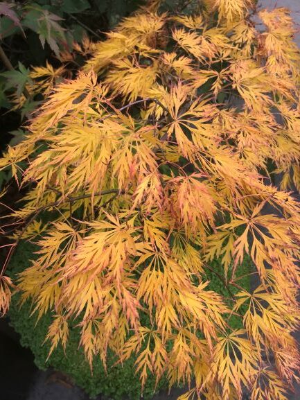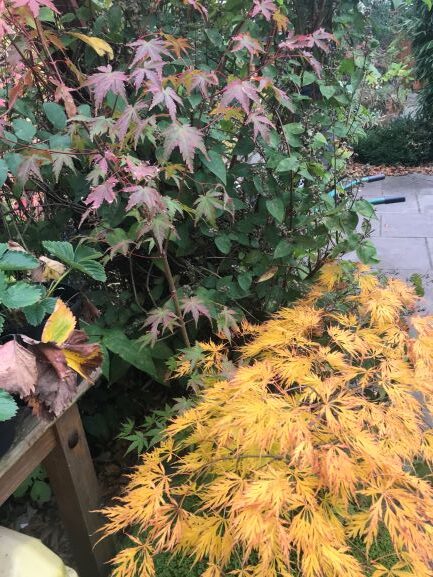 This acer has two main branches that have grown totally differently from each other. One branch is twice the size of the other and has totally different leaves. It must have been grafted with one of the branches reverting to the original plant. It’s certainly unusual.