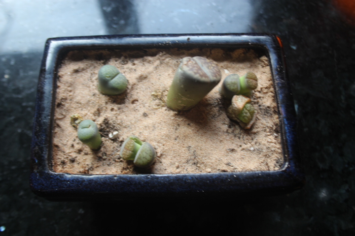 I re-planted my living stones after the dratted mouse dug them all up. Happily they have survived and continue to open and produce new leaves.